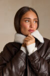 מעיל דמוי עור בשילוב פרווה.