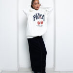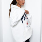 סווטשירט קפוצ’ון בגזרת אוברסייז, שרוולים ארוכים עם הדפס עם כיתוב מלפנים.